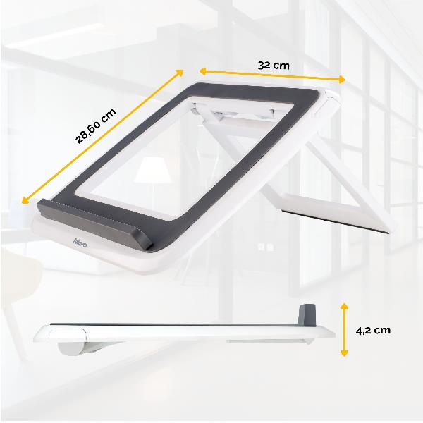 El soporte SPIRE en color blanco es un accesorio ergonómico diseñado para mejorar la postura y comodidad durante el uso del ordenador portátil o monitor. Con un diseño moderno y minimalista, ayuda a elevar la pantalla a la altura de los ojos, reduciendo la tensión en cuello y espalda.